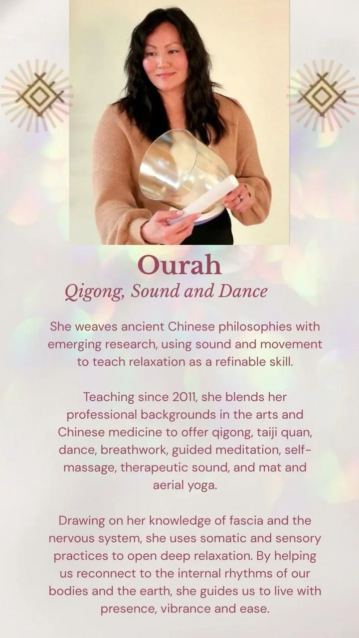 “Thank you to all my teachers, ancestors, and guides who have accompanied me on this journey of becoming a sound therapist and resilient human. You have planted a seed in my heart and my voice.”